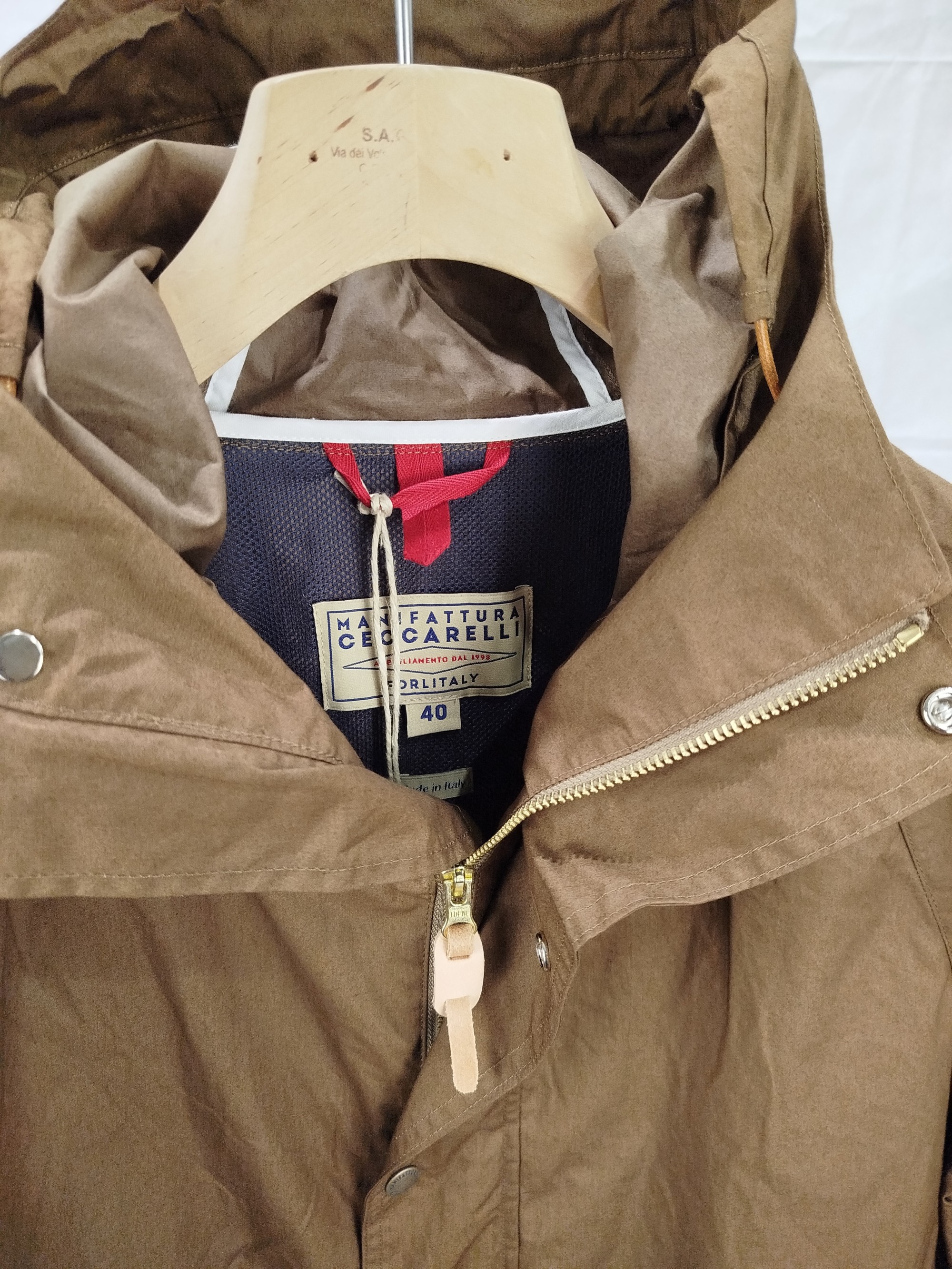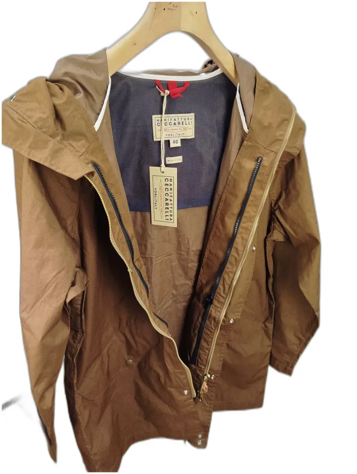 Elegante giubbotto in marrone di Manifattura Ceccarelli, dotato di cappuccio e chiusura frontale con zip, realizzato in cotone idrorepellente.É un capo molto leggero può essere indossato in primavera o nelle giornate d estate ventose,unisce stile e praticità grazie ai suoi dettagli curati e ai materiali di alta qualità, ispirati all’artigianato italiano. Un capo versatile che non può mancare nel tuo guardaroba.