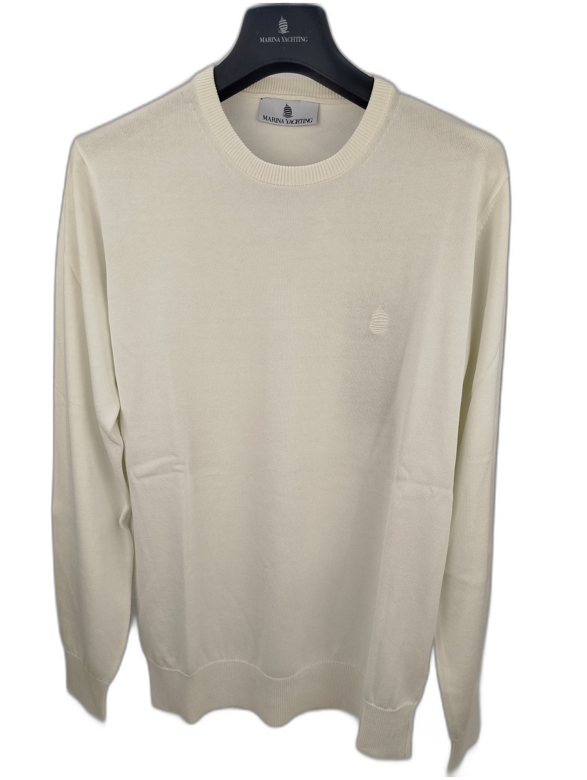 Elegante maglione in morbido cotone bianco, firmato Marina Yachting. Perfetto per un look casual o raffinato, offre comfort e stile in ogni occasione. Un must-have per il tuo guardaroba in ogni stagione.