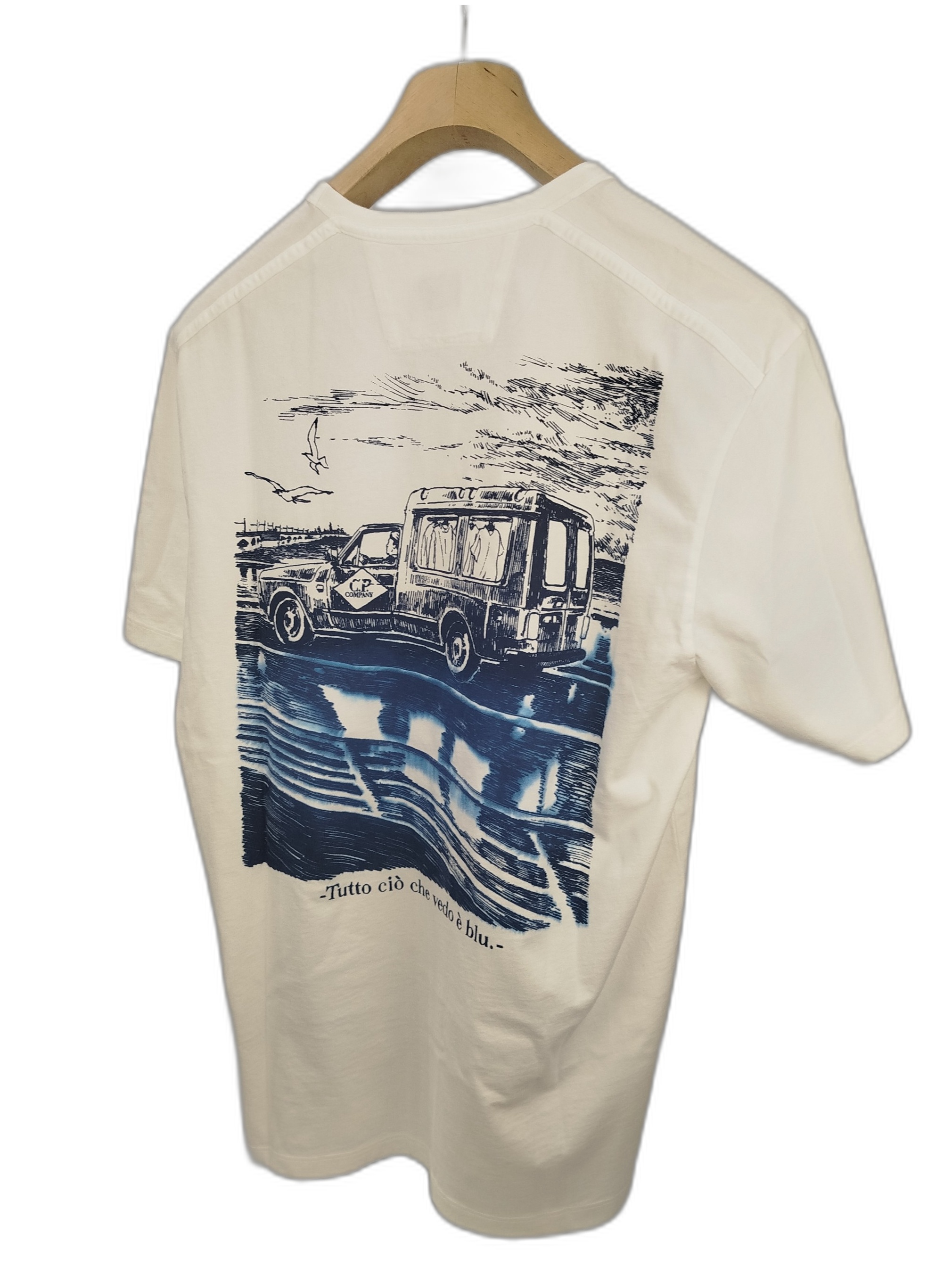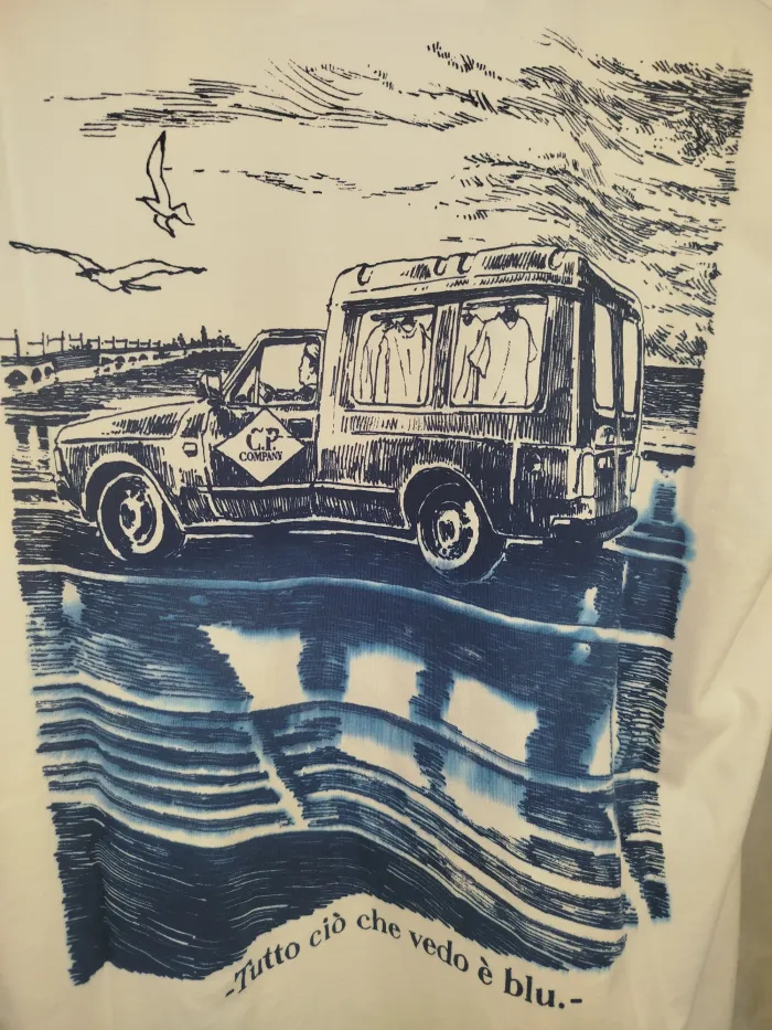 La T-Shirt C.P. Company unisce eleganza e originalità, con una stampa artistica ispirata alla bellezza del blu. Realizzata in cotone di alta qualità, è perfetta per ogni occasione. Indossa un pezzo di storia del fashion e porta con te l'essenza del brand.