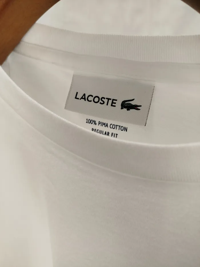 La T-shirt Lacoste bianca è realizzata in puro cotone Pima, offrendo comfort e un fit regolare. Il design minimalista è arricchito dal classico logo del coccodrillo, simbolo di qualità e raffinatezza. Perfetta per ogni occasione, dalla casualità al look elegante.